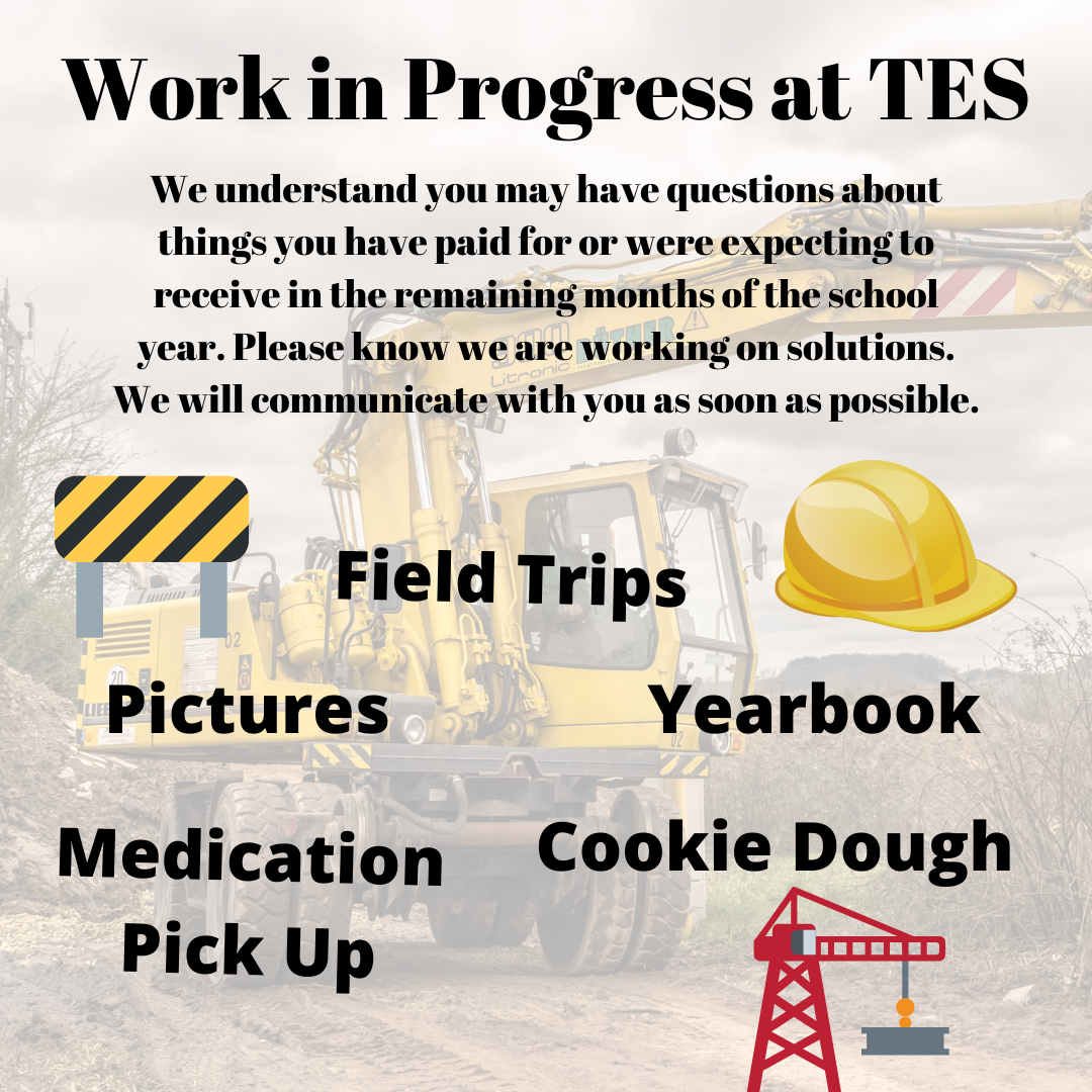 Many things were left "in progress" at TES, and we want everyone to know we are working on the following items and will inform you as soon as possible about these items.