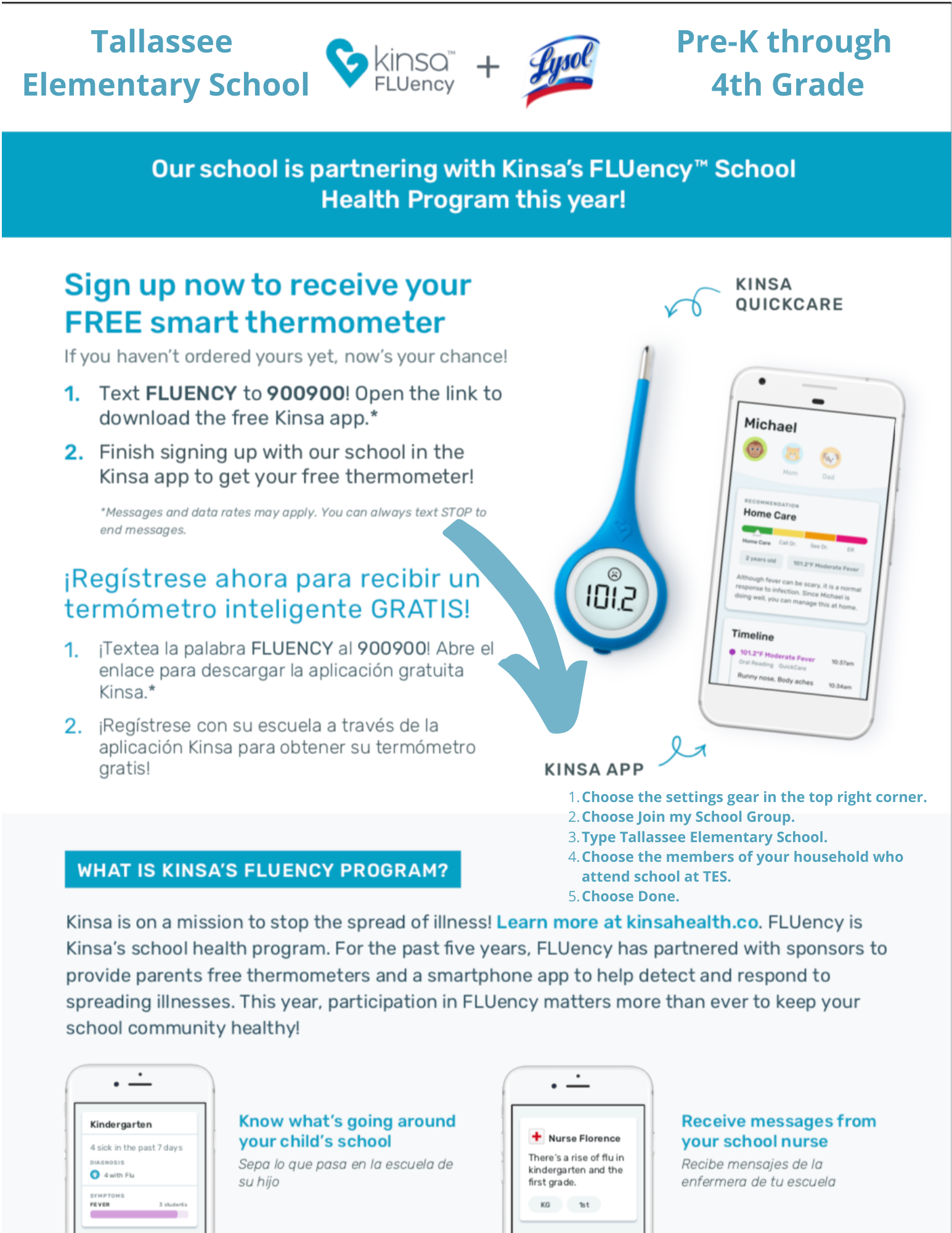 Tallassee Elementary was selected to become part of Kinsa for Schools. Tallassee Elementary School Nurse Mrs. Beth Nelson applied for the program. Kinsa for Schools connects parents and school staff on issues of student health, enabling quicker detection of spreading illness and rapid response to help keep students well and in class.