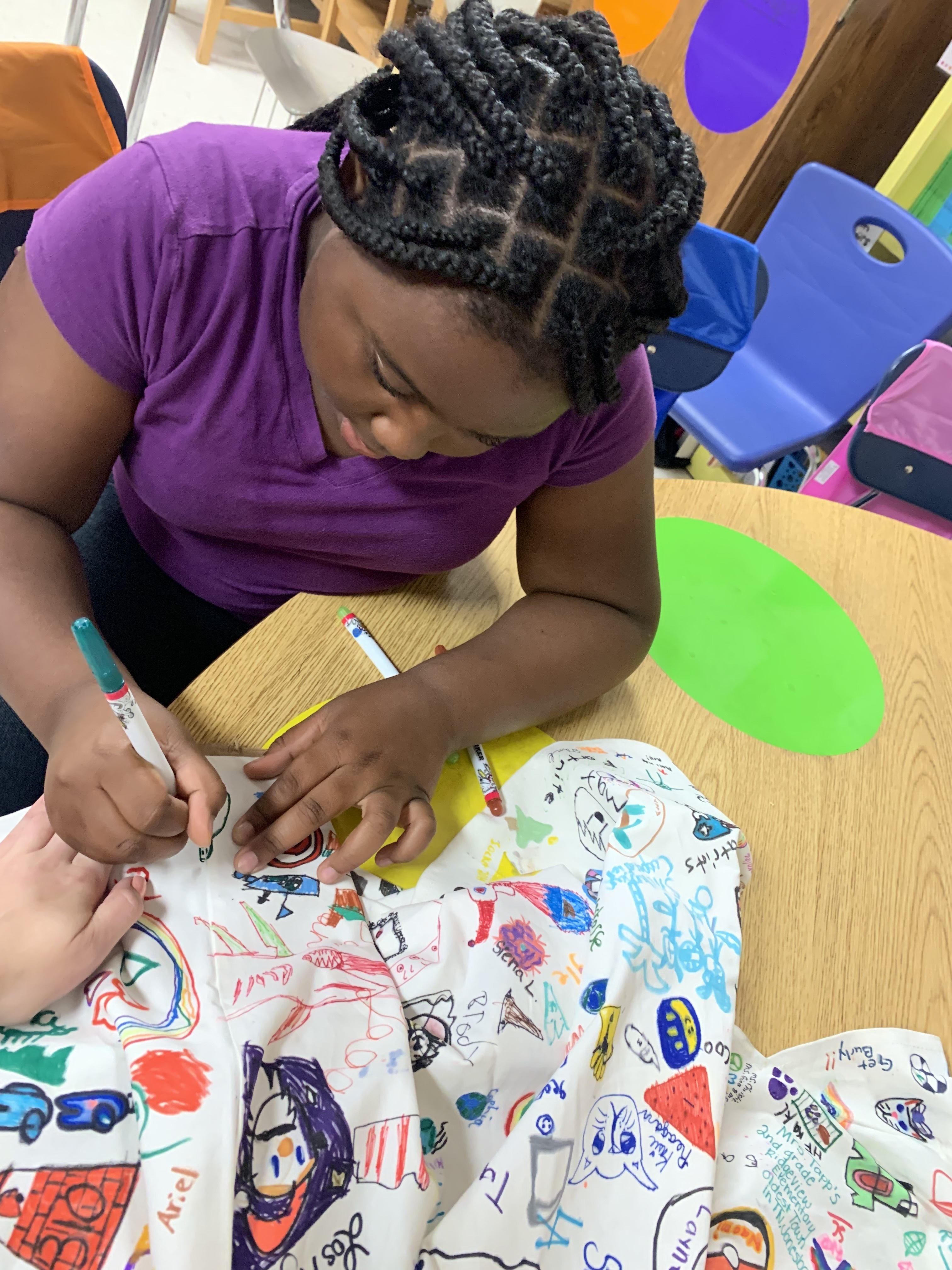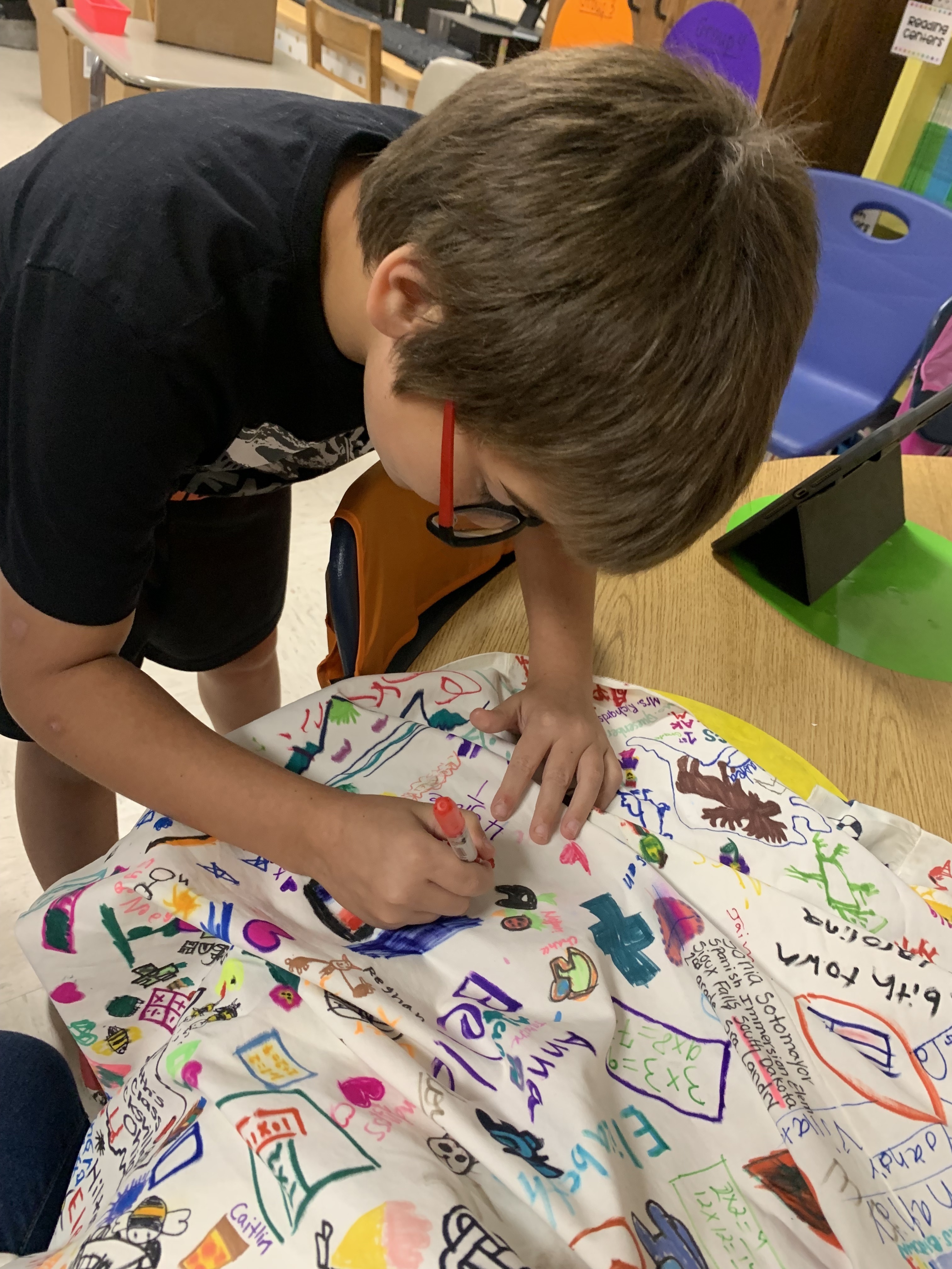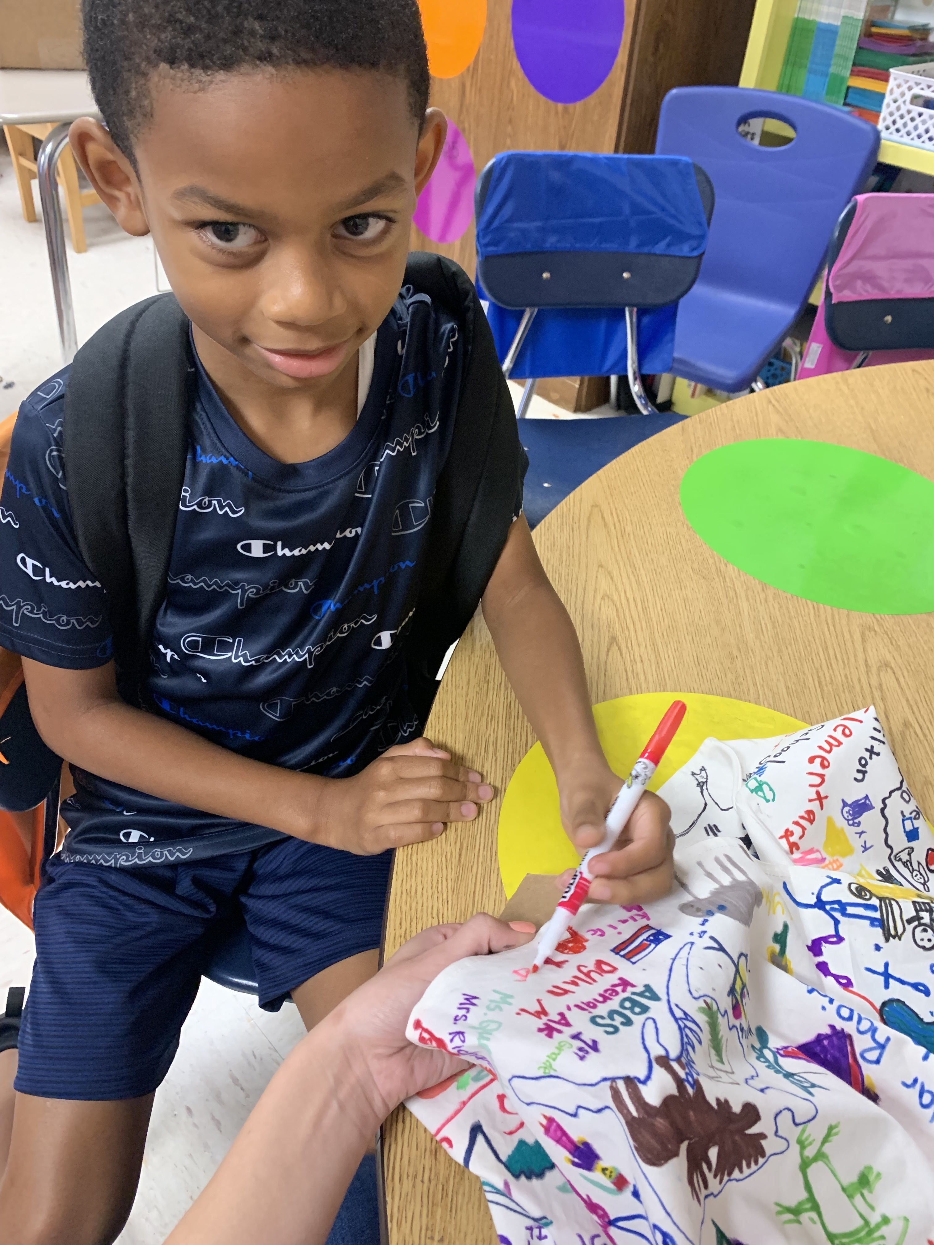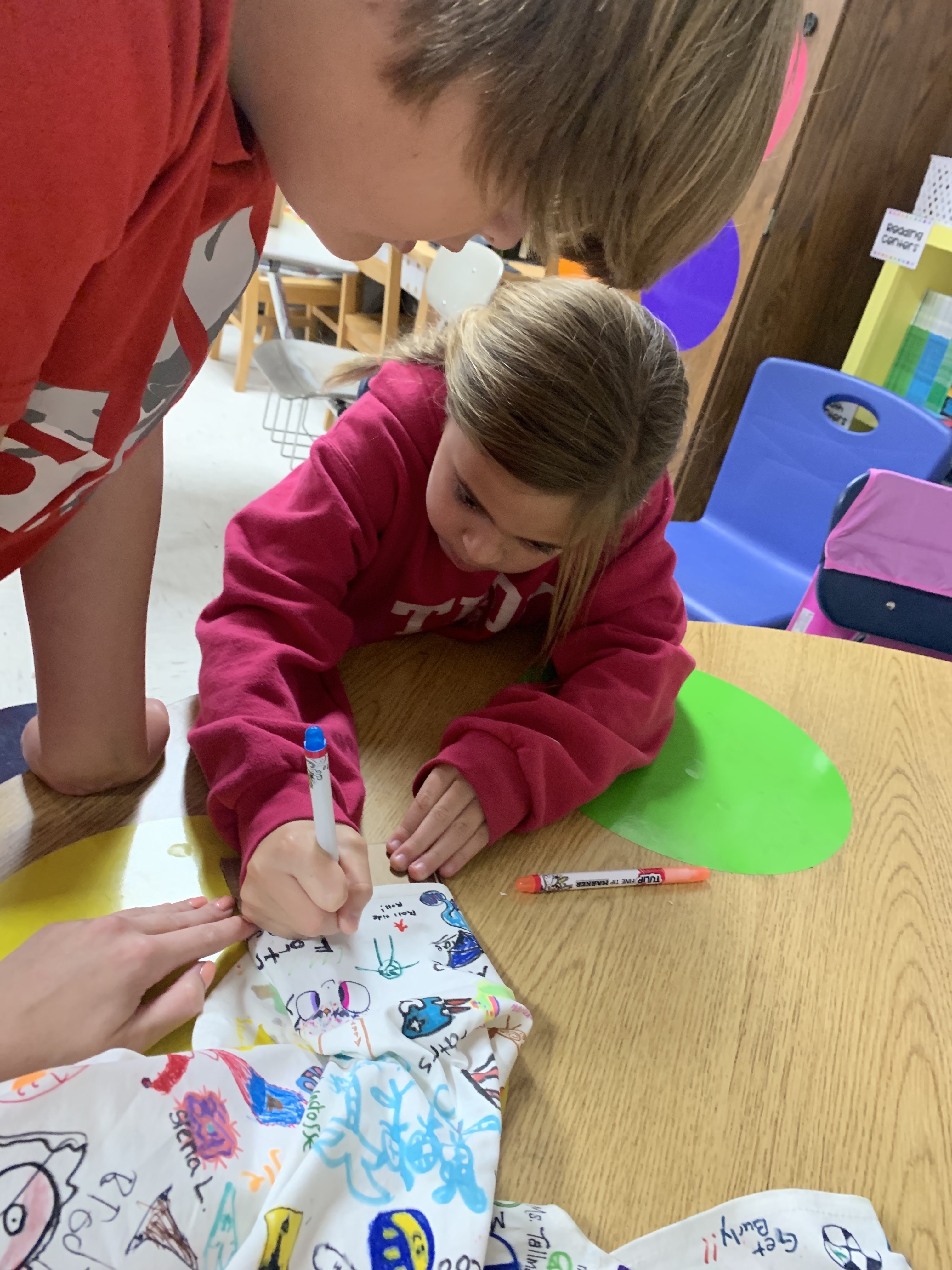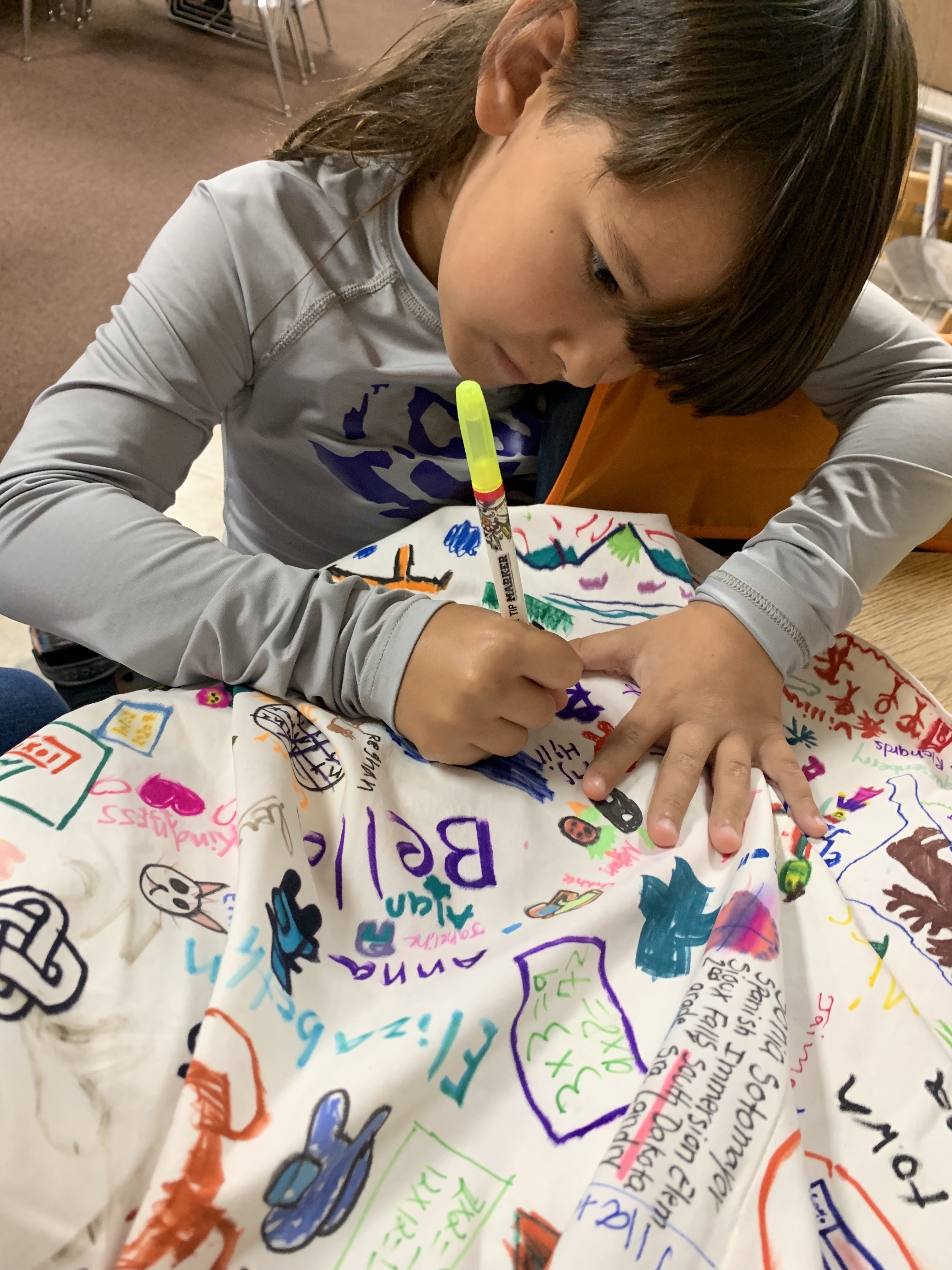 An elementary teacher from Oklahoma, Haley Curfman, began a "Kindness Project" with her class back in 2016. They purchased a white dress and decorated it with kind messages, sending it to classrooms all over the world to add their own drawings. The project was featured in articles, books, and on FOX News. However, that dress was lost overseas. Ms. Curfman's 2019-2020 class started the project over again- this time sending the dress to ONE class in each of the 50 States. Miss Hill submitted for her 3rd graders to represent Alabama, and they were chosen! The dress arrived on September 23rd. Miss Hill's students decided to leave their mark by adding the TES latitude and longitude coordinates. Students also chose a small symbol or drawing that was meaningful to them to add to the dress. They were thrilled to represent the entire state of Alabama for this project!