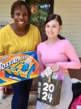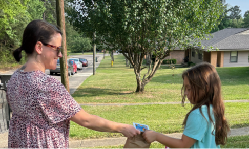 Having quick, positive, chats with parents on their porches while snack bags delivered to the students.