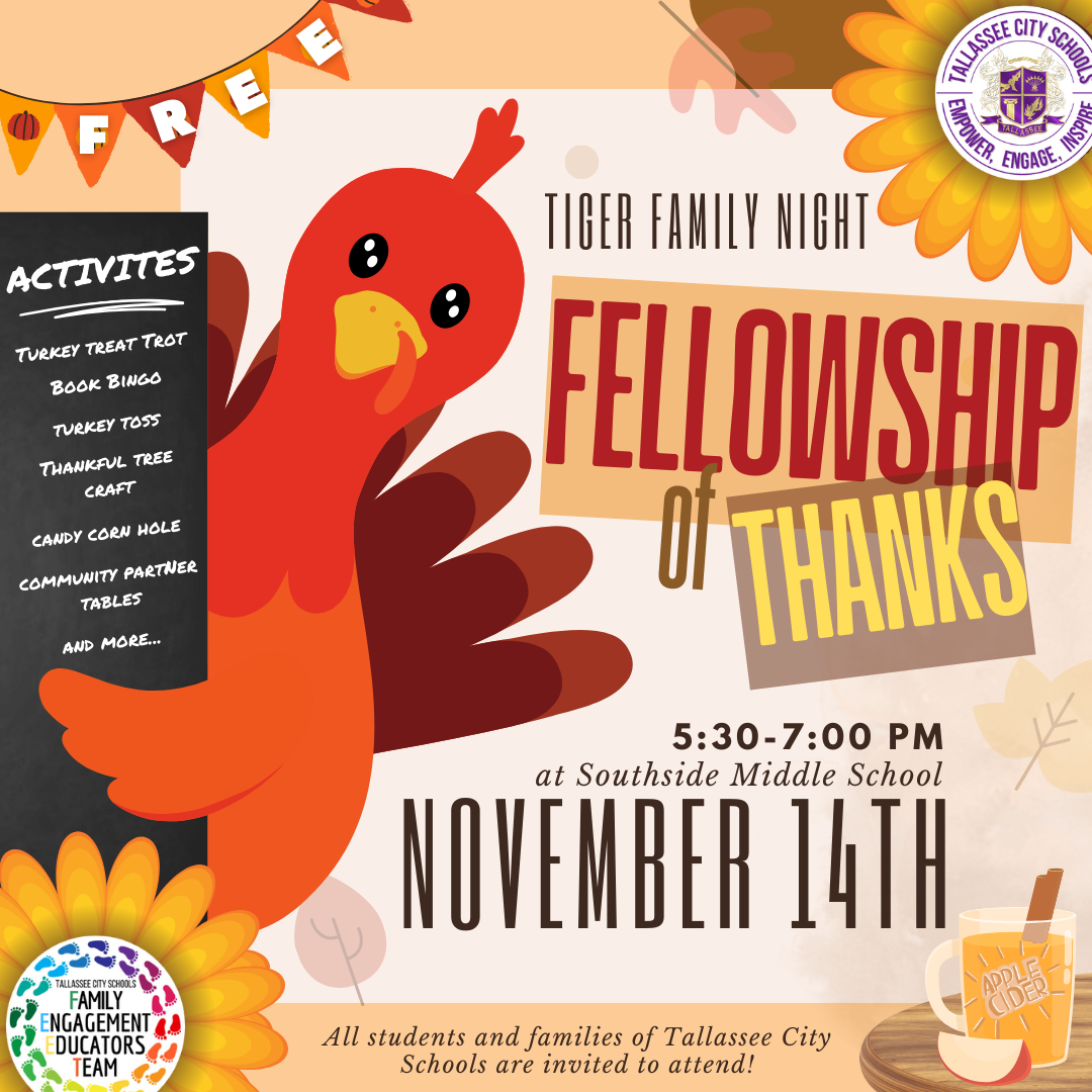 Research shows that when parents and school staff work together, students are healthier and more successful in school. TCS nourishes academic success with the understanding that it starts at home. This is visible through the work of our Family Engagement Educators Team (F.E.E.T.) does within our Tallassee community.
