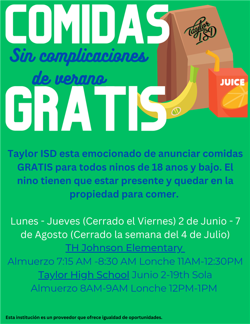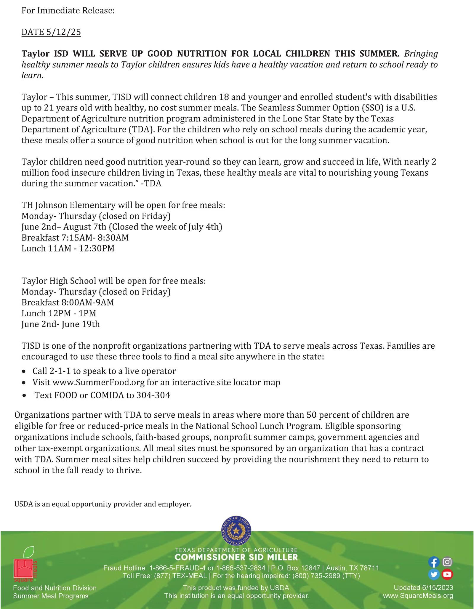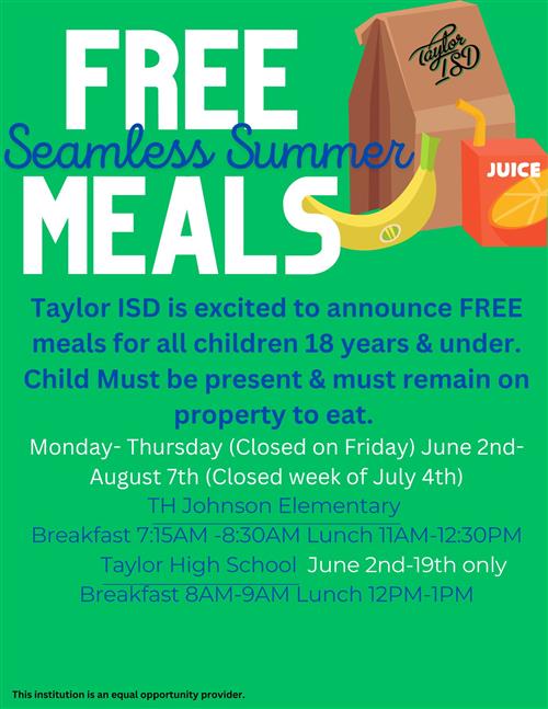 Taylor ISD Will Serve Up Good Nutrition for Local Children this Summer!