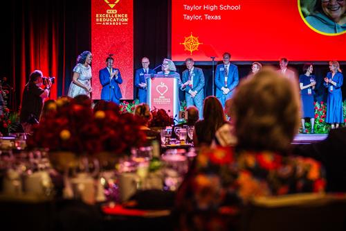 Mrs. Rowe was recognized during a statewide ceremony in downtown Austin where hundreds of educators, community leaders, and dignitaries gathered to celebrate the best in Texas public education. As a recipient of the Lifetime Achievement Award, Mrs. Rowe received $25,000 in cash and an additional $25,000 grant for her campus—Taylor High School.