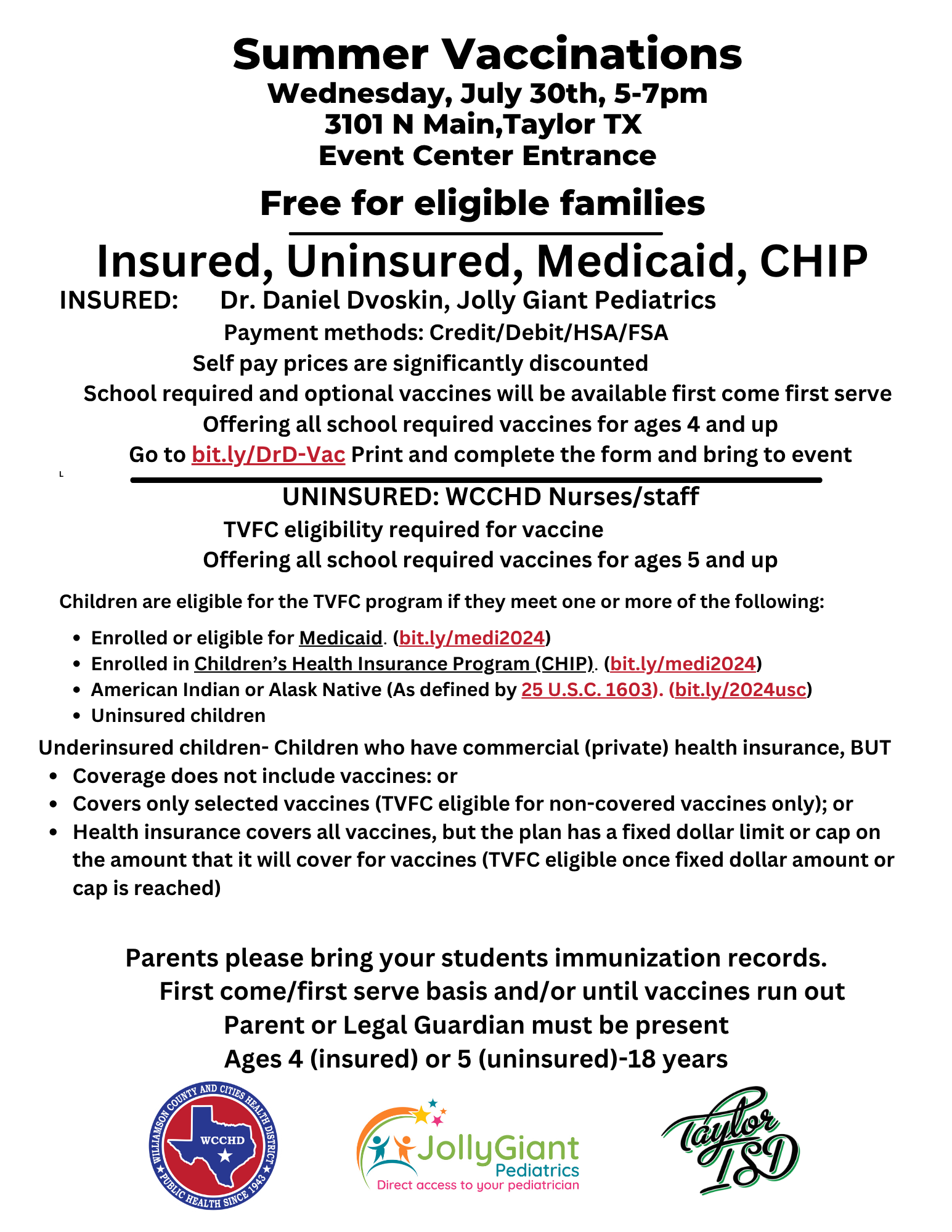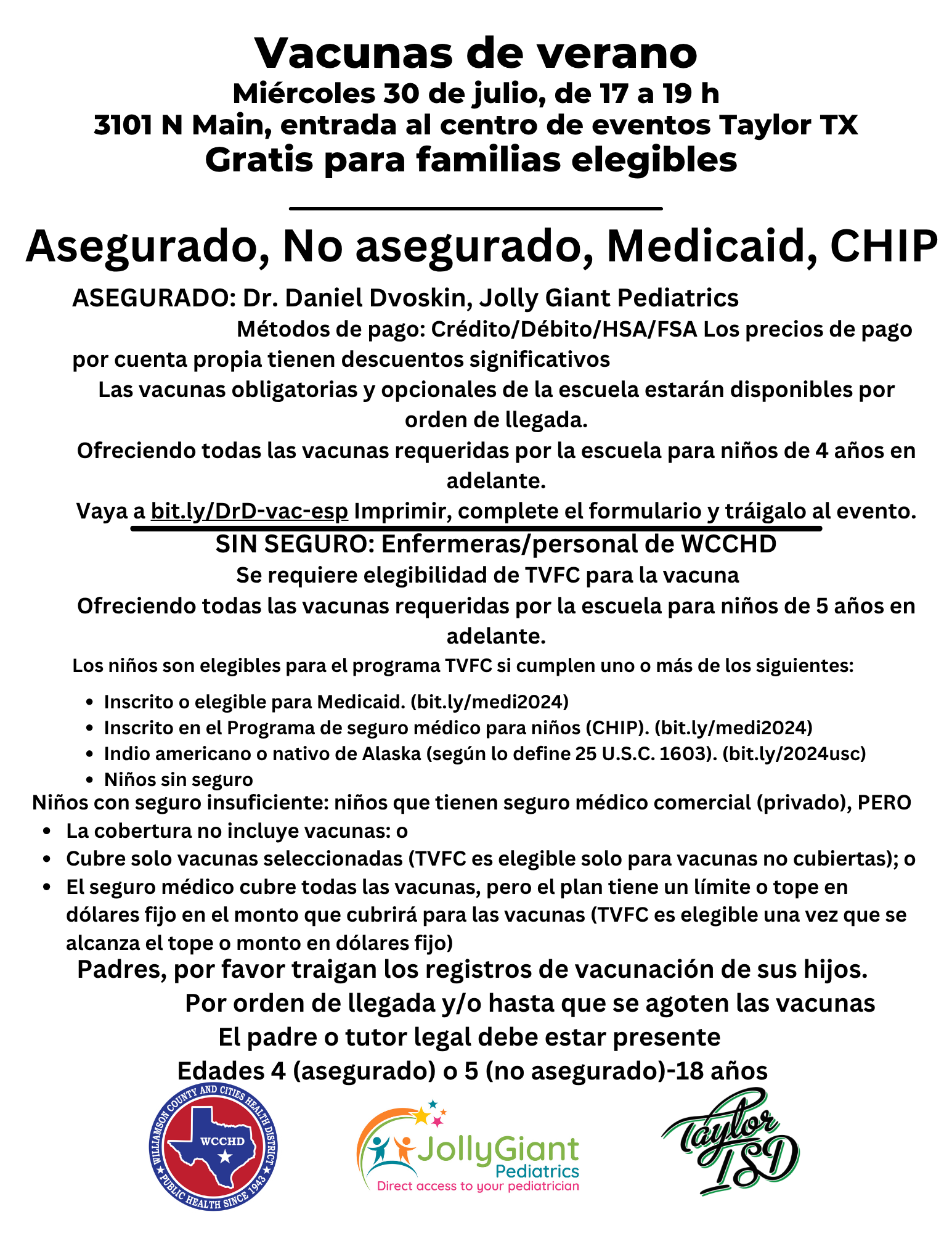 💉 Offered by: Dr. Daniel Dvoskin (Jolly Giant Pediatrics) & WCCHD staff