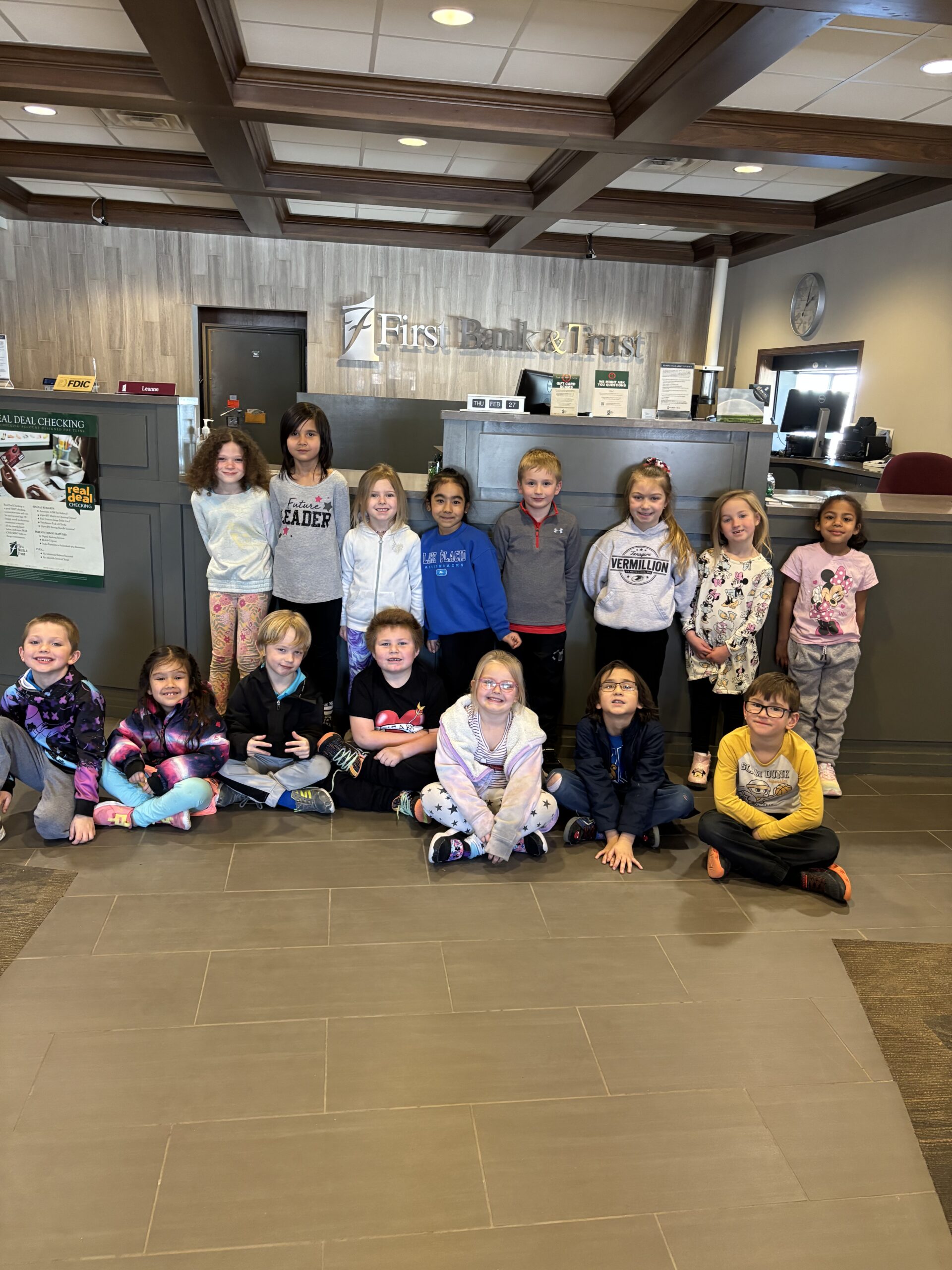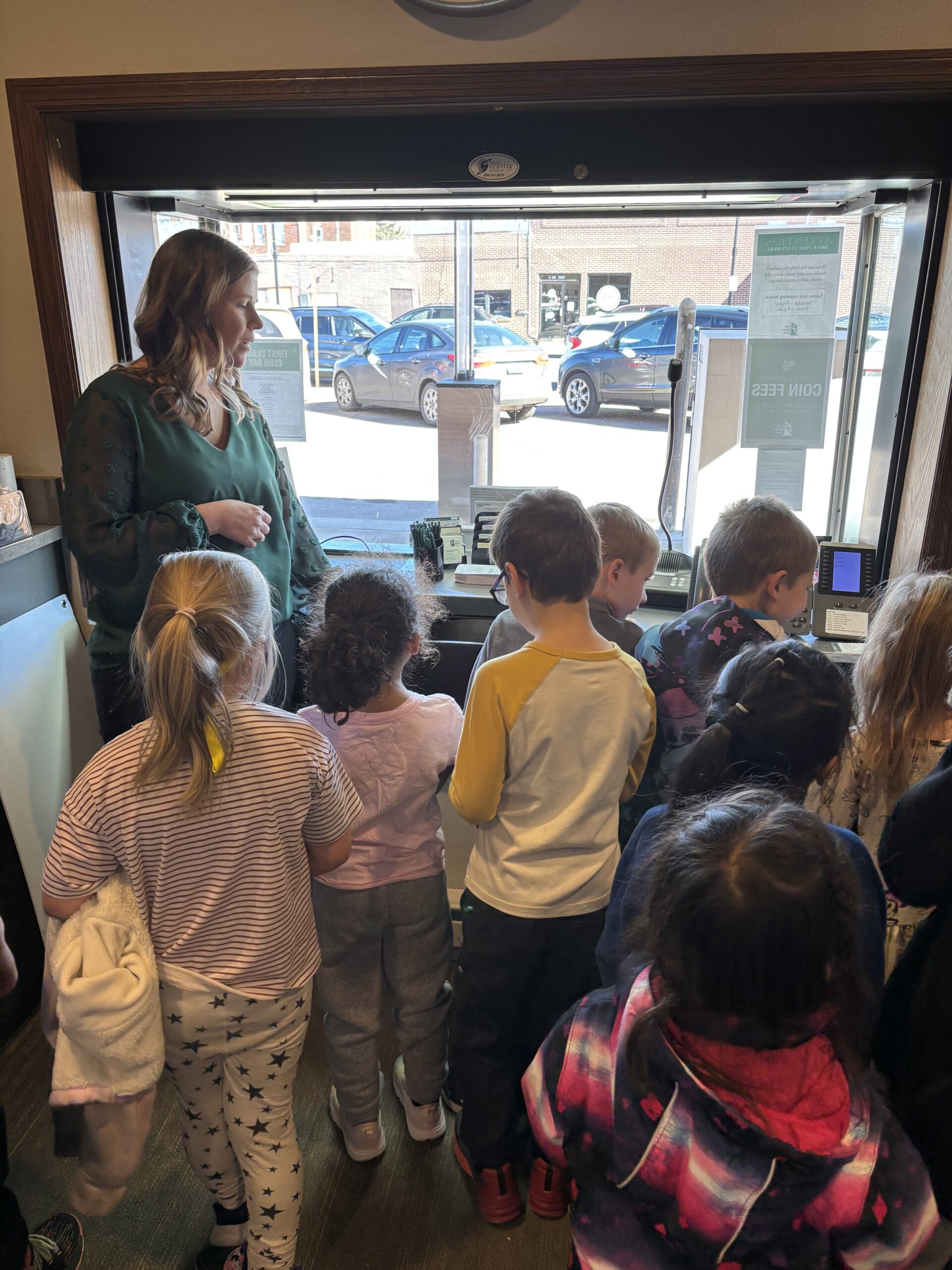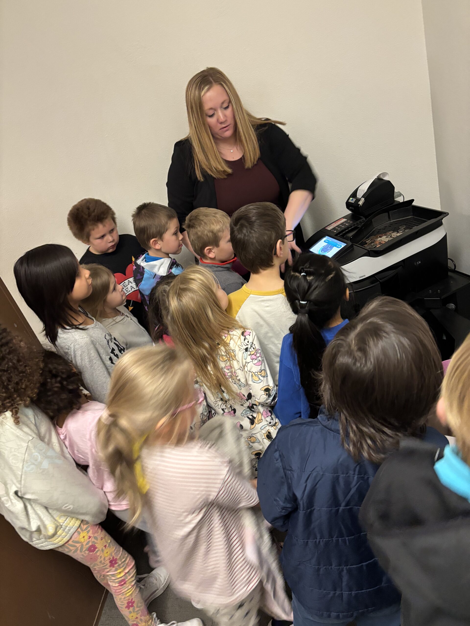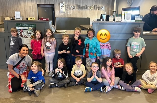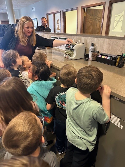 Kindergarten went to the bank for a field trip! They got to see how banks keep money safe and how savings accounts work. The highlight of the trip was getting their very own coin pouch with a dollar coin inside