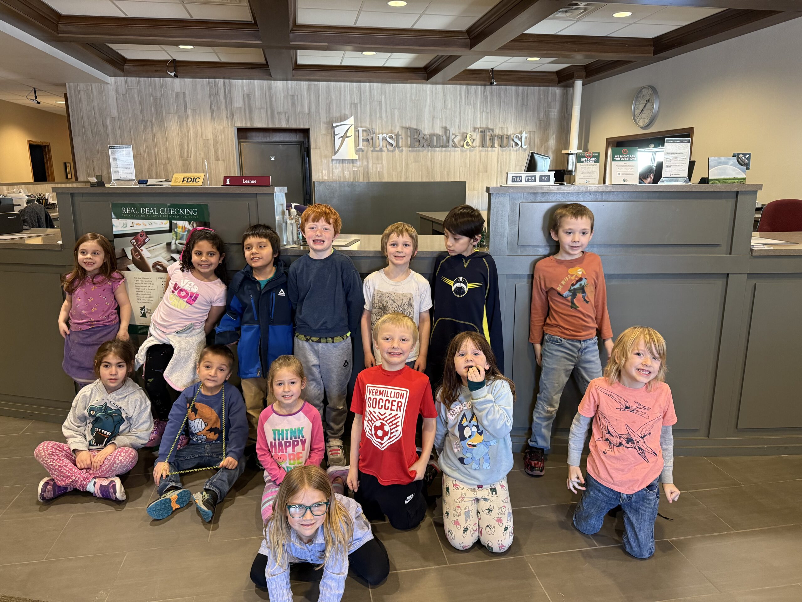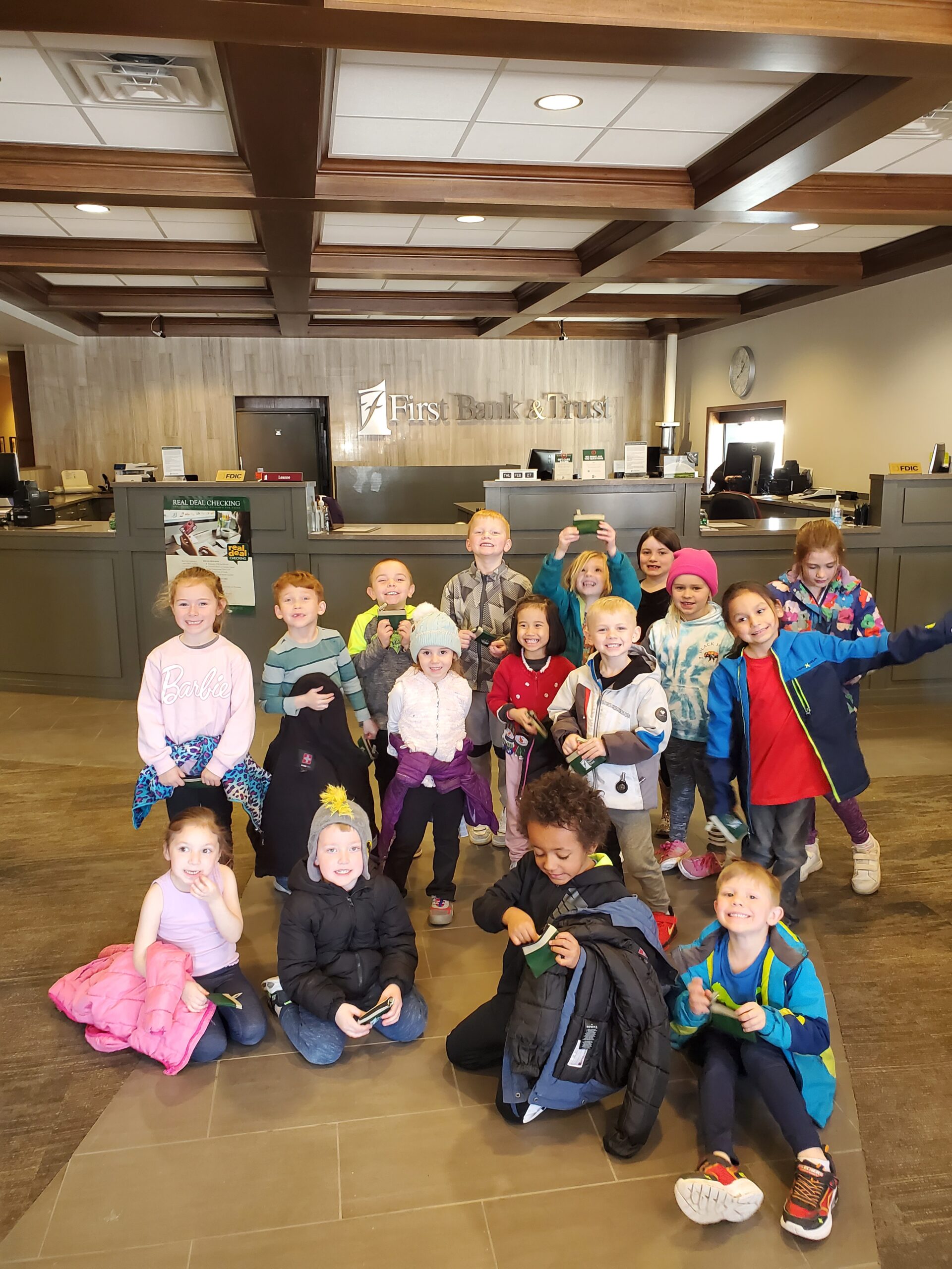 Kindergarten went to the bank for a field trip! They got to see how banks keep money safe and how savings accounts work. The highlight of the trip was getting their very own coin pouch with a dollar coin inside