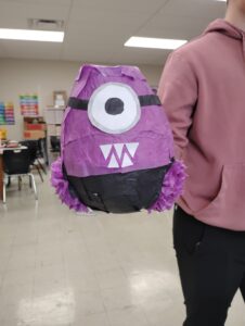 Señora Sudbeck’s Spanish students recently made piñatas. They learned about the history of them, what they are used for, and how they used to be made. We used a modern method using a balloon and Papier-mâché, then decorated them with tissue paper in varying application methods. They all did so wonderfully!