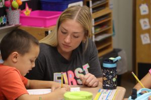 “At this point, Ayla has been doing a lot of observation to see what being a teacher entails,” Mrs. Crough said. “Ayla runs a center during our reading time where she works with groups of students on answering various writing prompts, using correct handwriting and sentence structure. Ayla also works with small groups of students to practice a variety of skills from reading memory words to practicing the spelling patterns of the week. Ayla also walks around the room during whole group instruction supporting all students. As the year goes on, Ayla will start to become responsible for more tasks.”