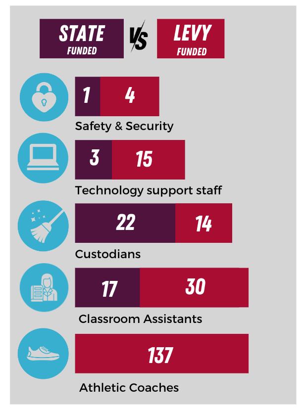 The state provides funding for most teachers, but the levy increases the number of staff in critical roles to ensure the needs of the 6,800 students in our district are being met. In some cases, the state provides no funding at all.