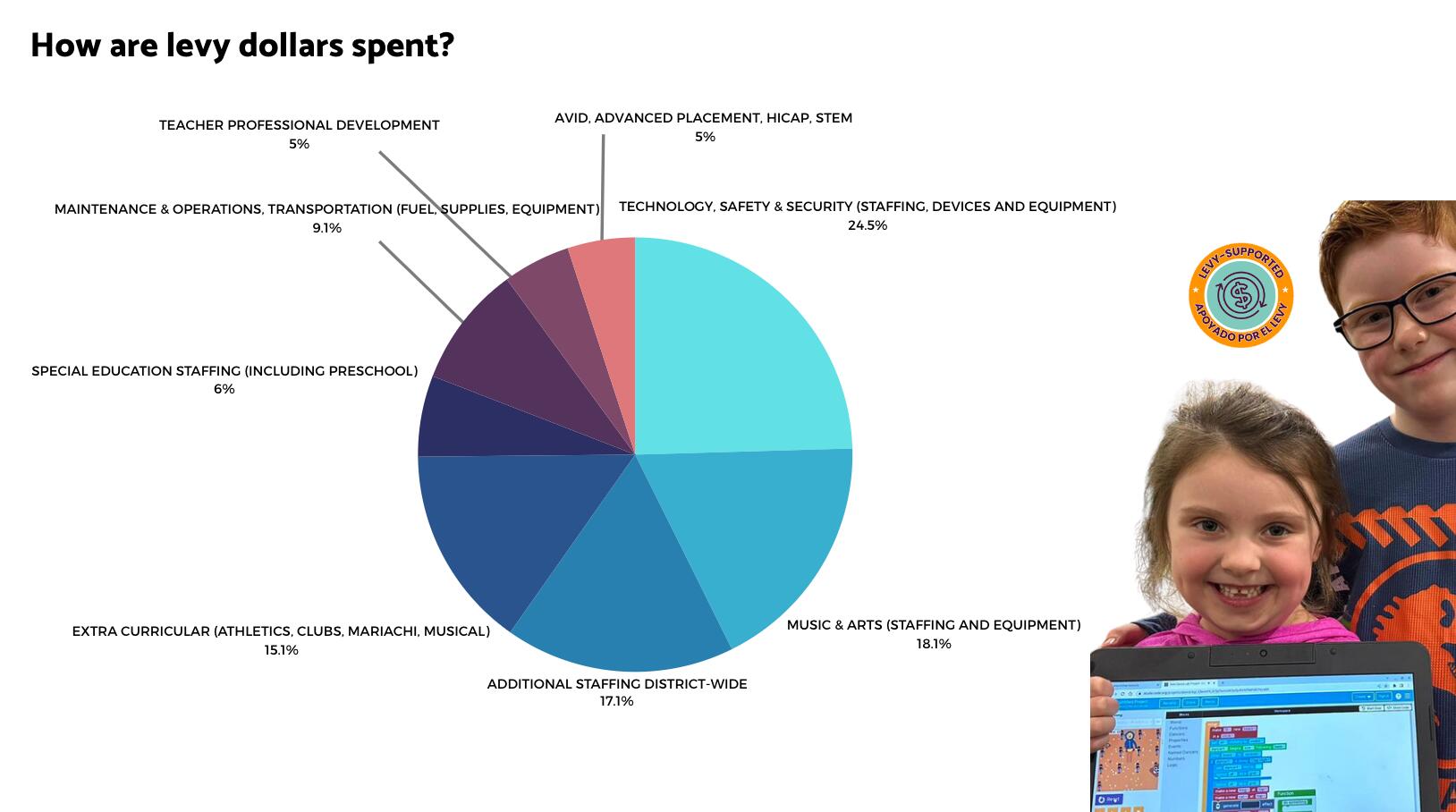 The levy is not a new tax or funding source. If approved by voters, this continues a current essential funding source. The money collected from local, voter approved levies stays in our district to support our students.