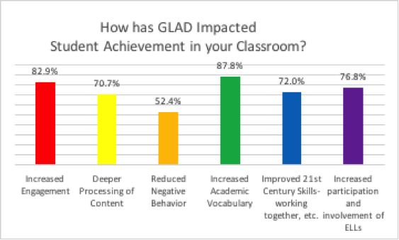 “The GLAD Program offers many opportunities for all students to be fully engaged in their learning. The instructors were very knowledgeable. There were opportunities to build my own personal repertoire of materials to use with students in my own classroom.”