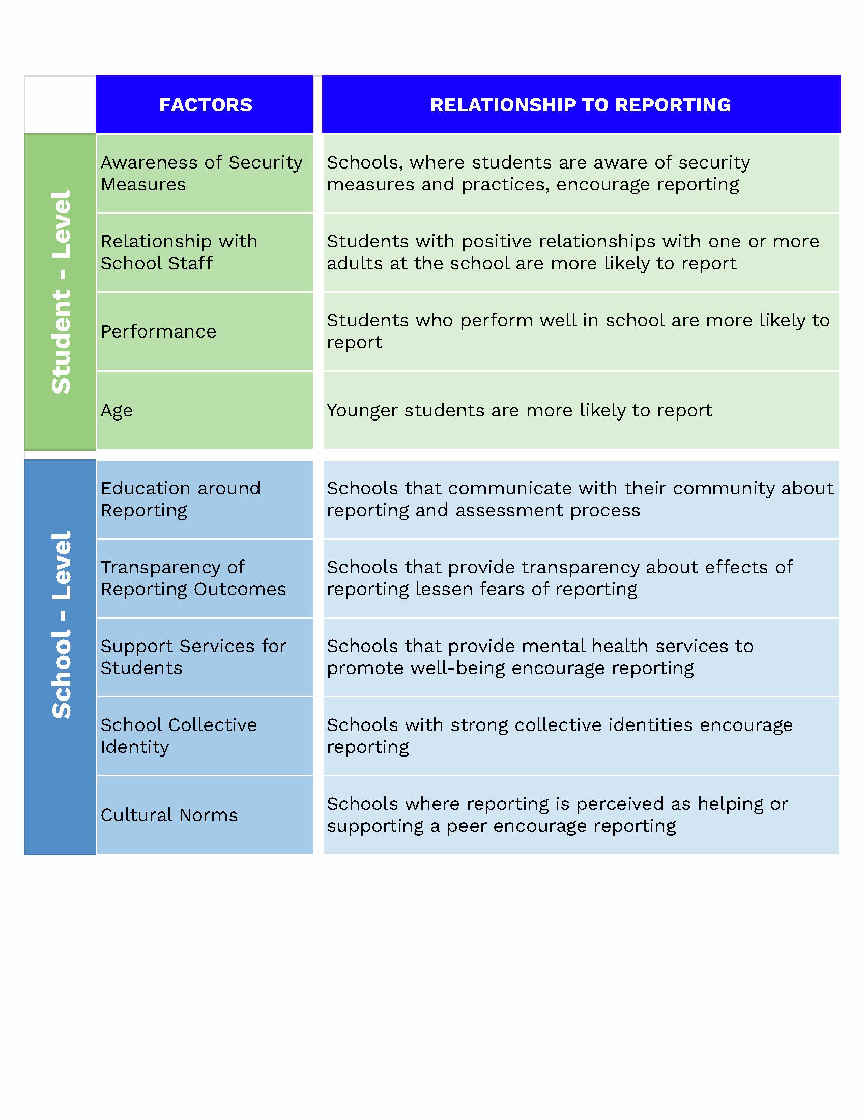 - Encourage bystanders to report concerns for the wellness and safety of themselves or others. In addition to reporting concerns of school violence encourage reporting issues where a student may need additional support, including bullying, drug use, self-harm, suicidal ideation, and depression.