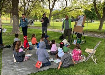 This field experience takes place at the Jacobson Preserve (1811 Skyline Drive, Wenatchee) in April. First graders learn about the needs of plants and animals of the shrub steppe and the ways in which they survive and grow by visiting 3 learning stations. Instructors teach the same station up to 4 times a day.