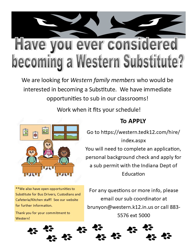 Notice is hereby given that Western School Corporation, Howard County, Indiana (“WSC”), shall receive responses to a Request for Qualifications/Request for Proposals for a Guaranteed Savings Contract, dated July 1, 2025 (the “RFQ/RFP”) until 2:00 pm ET on Monday, August 11th, 2025, at the Office of Administration located at 2600 S 600 W, Russiaville, IN 46979. Responses will be in accordance with IC 36-1-12.5 and the requirements set forth in the RFQ/RFP. For more information contact Mr. Mark DuBois, Superintendent at This email address is being protected from spambots. You need JavaScript enabled to view it..