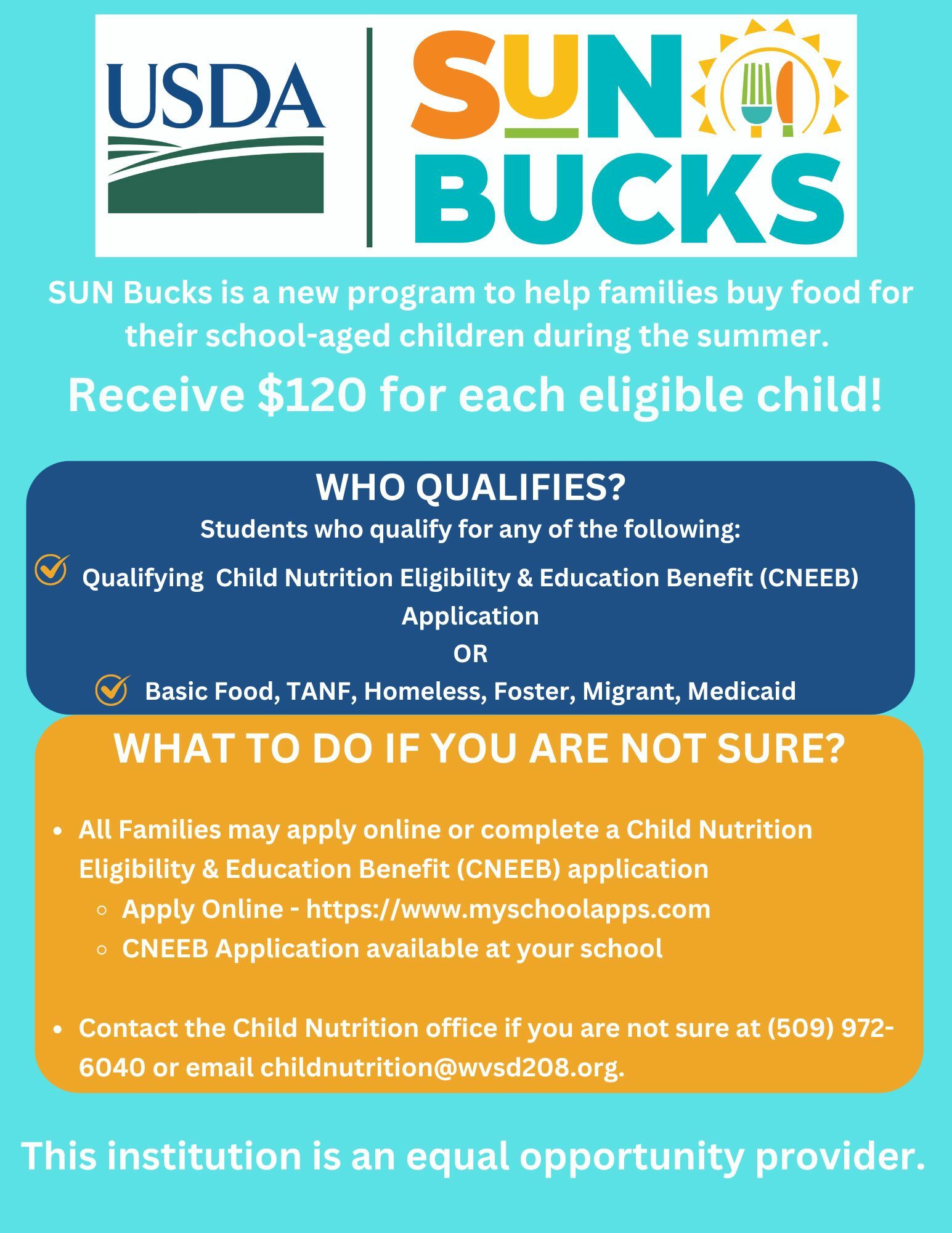 We’re thrilled to share that this year, all enrolled students at Apple Valley and Cottonwood Elementary can enjoy school meals at no cost through House Bill 1238: Meals for Washington Students. To keep this benefit available in future years, we ask that you complete the Child Nutrition Eligibility & Education Benefit application. Look for paper applications arriving in mid-August, or you can fill out the online form now at www.myschoolapps.com. Your participation helps us ensure that meals remain free for our students in the years ahead. Thank you!