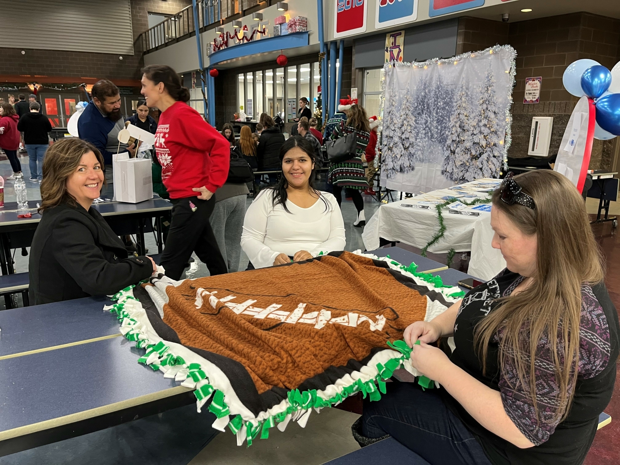 At the All-District Winter Wonderland event in December, the Parent-Teacher-Student Association (PTSA’s) from each school in the West Valley School District organized activities for students and families. The High School PTSA organized a community service project that was a fun activity to assist families in need during the winter season. Volunteers at the Winter Wonderland completed six warm fleece blankets that were donated to RAM Landing after the event. All of the materials for the fleece blankets were provided by “Give Back Give Warmth – Blanket – Yakima” with financial assistance from the Southwest Rotary Club.