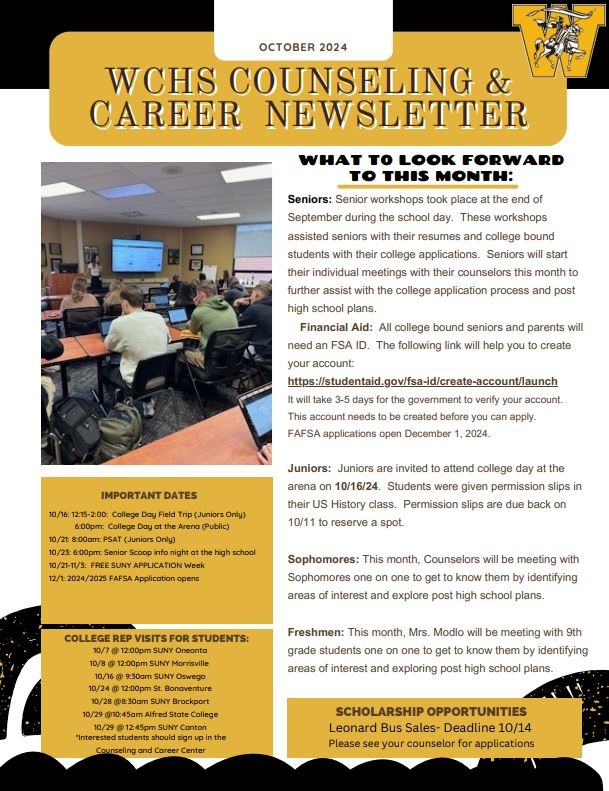 The counseling office has many resources available to students and their parents to assist them in planning for their future. Through the Career Pathways curriculum, the ninth and tenth grade students learn how to access and utilize the resources housed in our Career Center. Students learn how to research information on specific careers, which colleges have the best programs to lead them on that career path, and the requirements to be accepted to these schools.