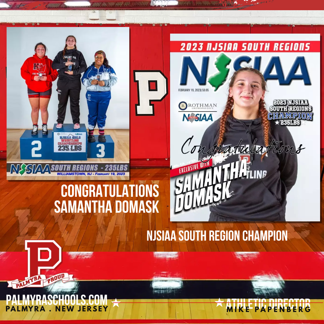 The Girls Wrestling Regionals took place on Sunday. Samantha Domask was able to capture the 235 pound NJSIAA Region Championship after beating the #1 seed and #1 ranked wrestler in the state at 235 pounds in the finals. Sam has advanced to the NJSIAA State Championships which will be held this weekend at Phillipsburg High School. Congrats to Sam and Trevor on a BiG wrestling weekend!