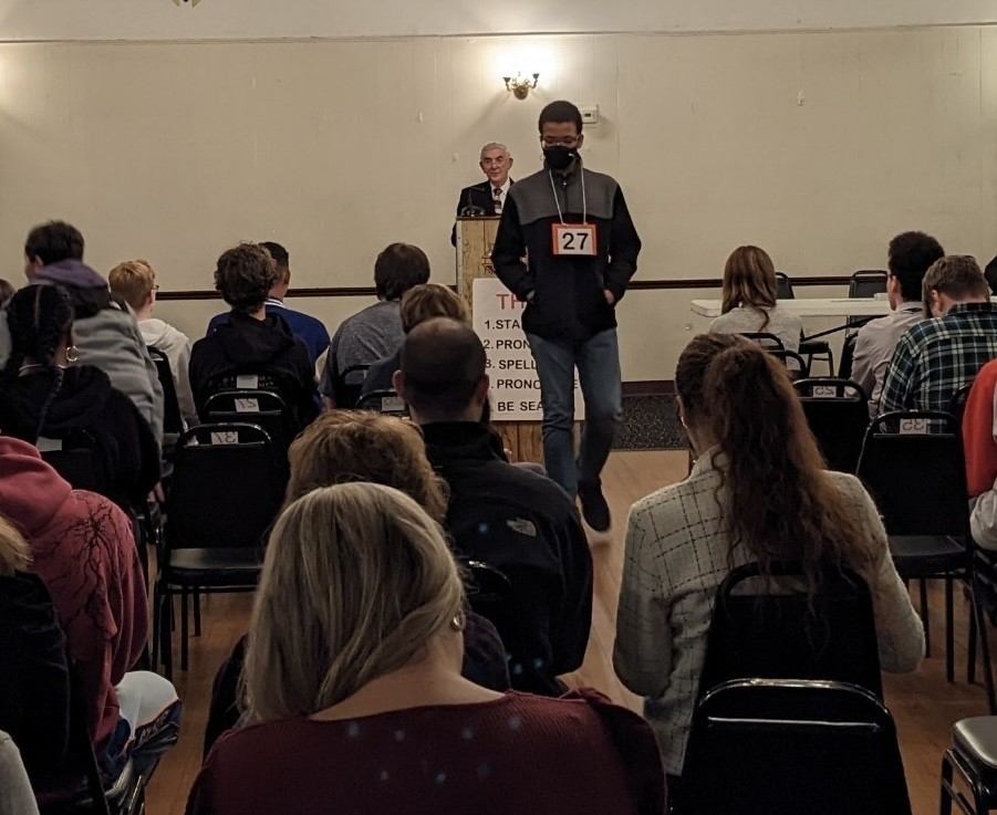 The PMS Spelling Bee Team consisting of (L-R) Joshua Carter, Ueder Alves DeSousa, Zaria Welch, Milana Sanders and Mason Blandford, led by Miss Wallace showed up and showed out in the Knights of Columbus 8th Grade Regional Spelling Bee!