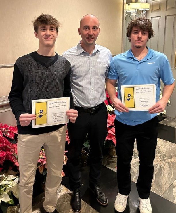 Jase Jennings, Andy Santoro and John Bilkins all received All State Recognition at yesterday’s Soccer Coaches Association of New Jersey All-State Banquet. Furthermore, the boys were notified that they finished the season ranked as the #23 public school team in the entire state which is voted on by the Soccer Coaches Association of New Jersey. A huge achievement for such a small school!