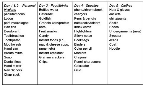 PHS is expanding their "closet" for students in need. A competition has been set up to make the new goods drive fun. There is a schedule for collection and points will be assigned for anyone bringing items from that particular day's focus items. (of course, all items are welcome at any time, but points will only be assigned for items on the challenge days)