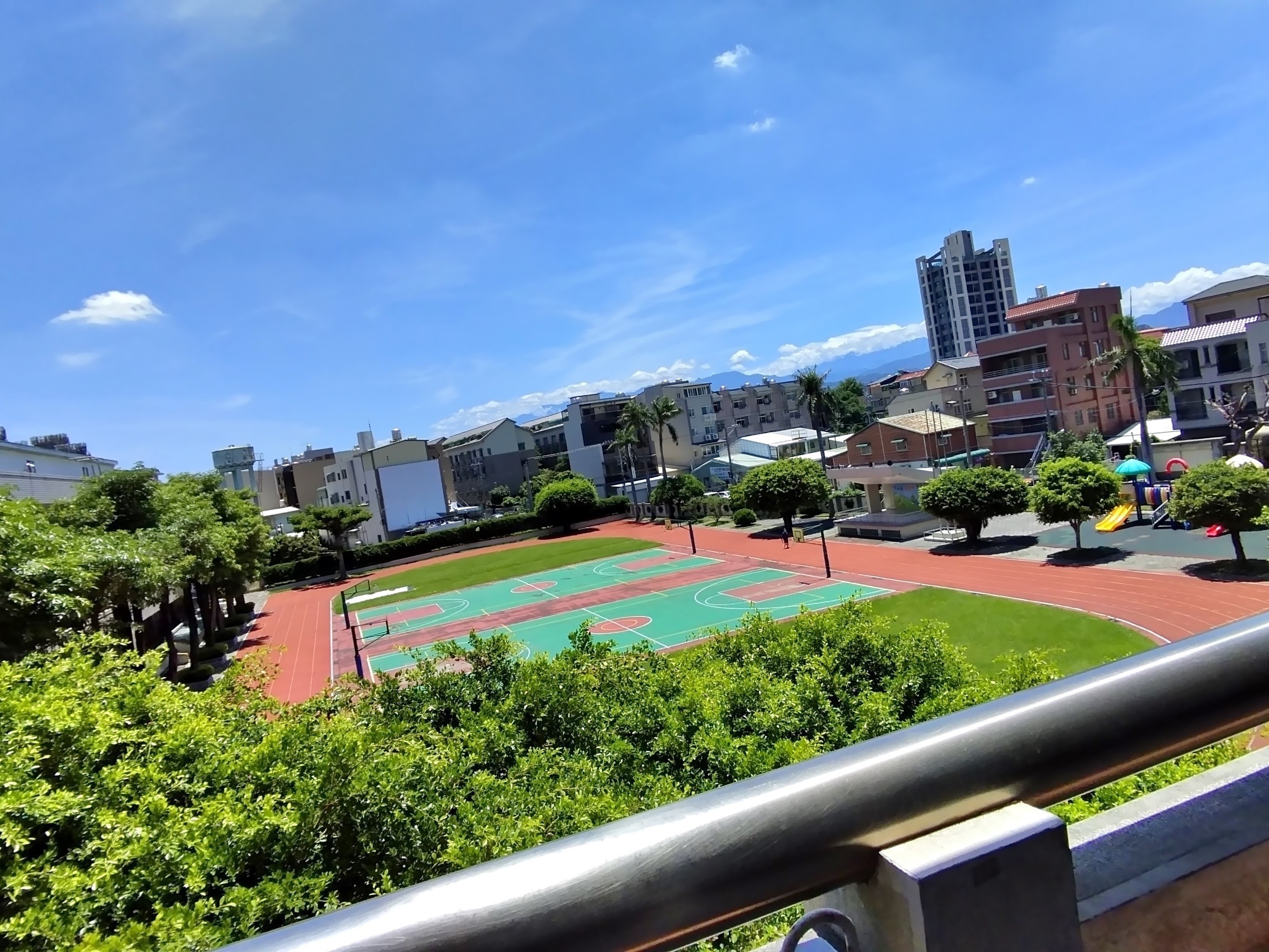 The cooperating teacher picked us up from the train station platform and got us a taxi to the school. While there we had tea/fresh fruit/ snacks with the school director (principal), cooperating teacher, and English teacher. Then we received a martial arts and musical performance from teachers. This was followed by a tour of the school where we got to tour the library and do a lesson (where they had Harry Potter, Pride & Prejudice and whole section books that were English/Chinese together), complete a STEM lesson, see the students' roller-blading club in action, and tour their classrooms. The campus is beautiful, as seen in this picture.