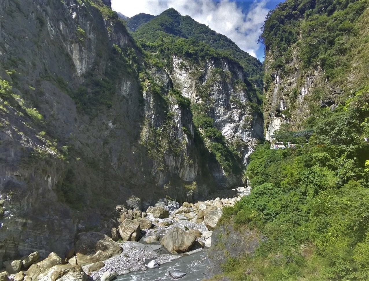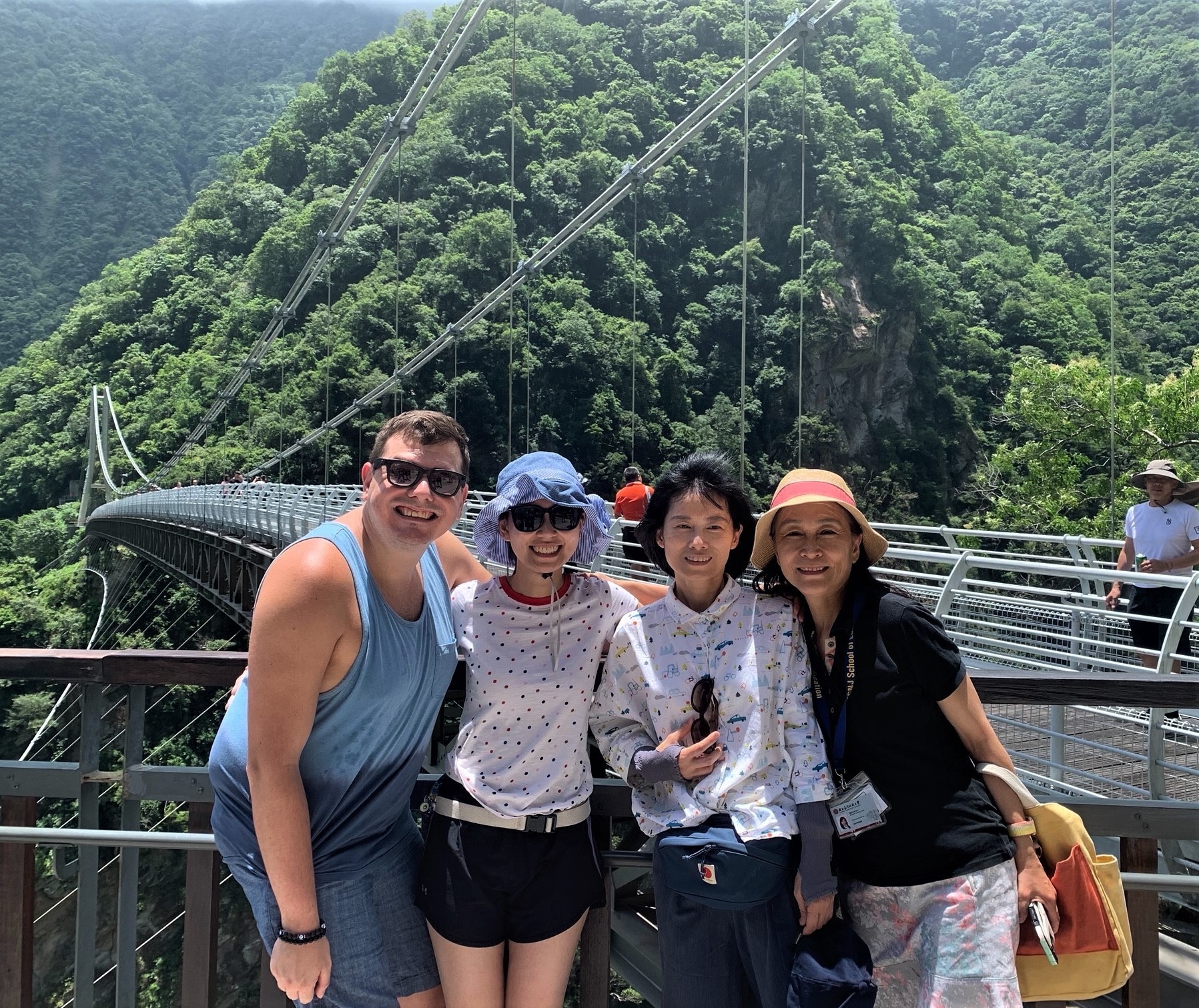 One landmark was a world renowned library (pictured above). We visited National Parks, a Grotto......and beaches (Wǒ xǐhuān hǎibiān!- "I like the beach" in Mandarin). There were extraordinary vistas to take in of the river & mountains from the Xikou Suspension Bridge.  I was happy to share this with my tour mates!