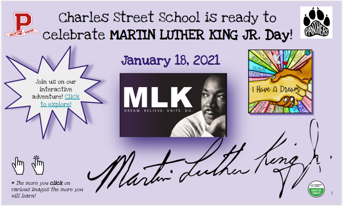 Charles Street School celebrated Martin Luther King, Jr. Day this year in many ways.  The most successful effort was a project that was part of the Library|Media Exploration of MLK.
