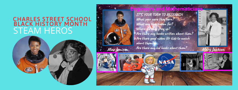 Shout out to Miss Hoffecker for her interactive STEAM class pages (still photos shown). She is working with her STEAM classes to salute Black Heros in STEAM.