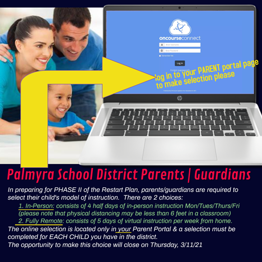 More information regarding the details is in Dr. McBride's letter of 3/4/21: https://www.palmyraschools.com/.../superintendent...