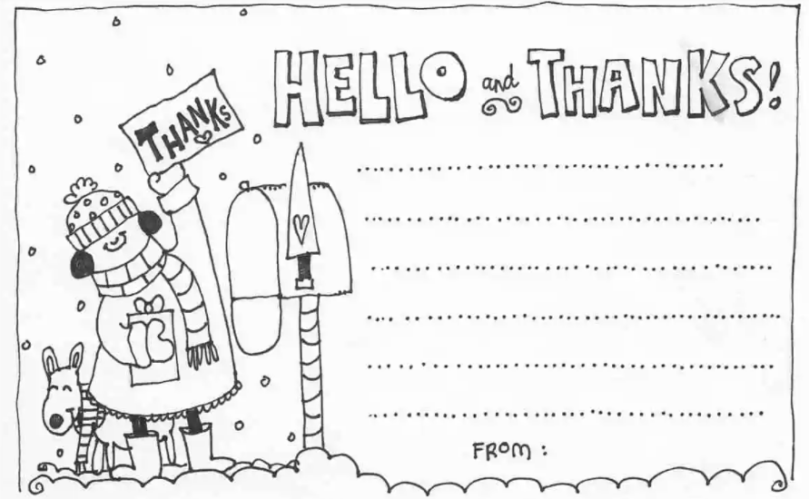 A snow day could be a PERFECT day to hand make thank you notes like the ones below & the link from the skiptomylou website includes free printables for simple notes for any age.