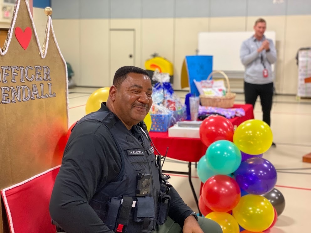 Emcee and Lead Teacher, Mr. Devlin ribbed Officer Kendall for his 250 years of service, noted that he was a Palmyra Alumni, a member of the Palmyra Athletic Hall of Fame and that he still had a chance to change his mind about retiring! He invited each class up to present Officer Kendall with their class gift and reminded the students that Officer Kendall was always one to uphold the Panther Pledge and #BeKind #BeSafe #BeResponsible & #BeRespectful.