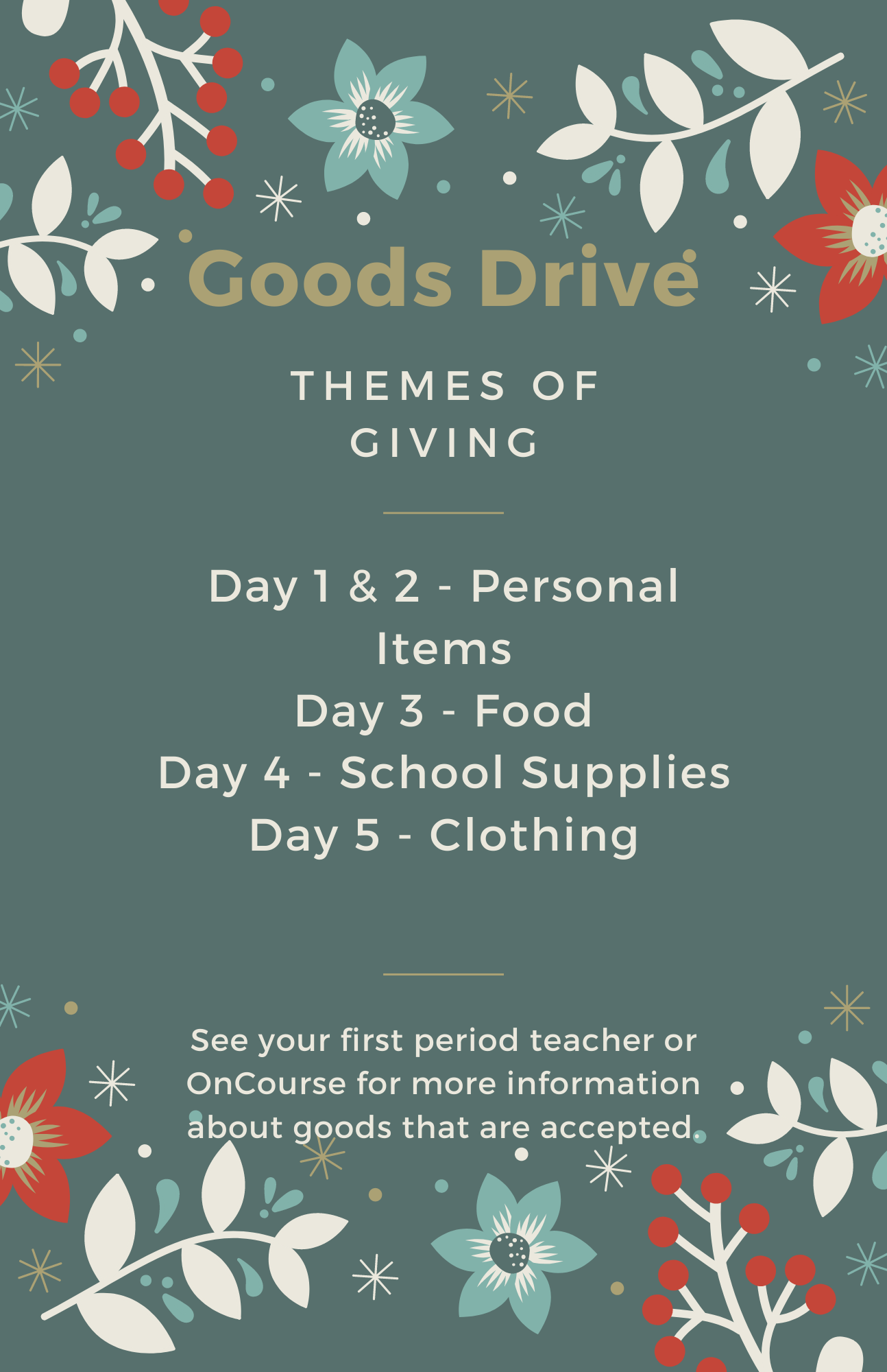 PHS is expanding their "closet" for students in need. A competition has been set up to make the new goods drive fun. There is a schedule for collection and points will be assigned for anyone bringing items from that particular day's focus items. (of course, all items are welcome at any time, but points will only be assigned for items on the challenge days)